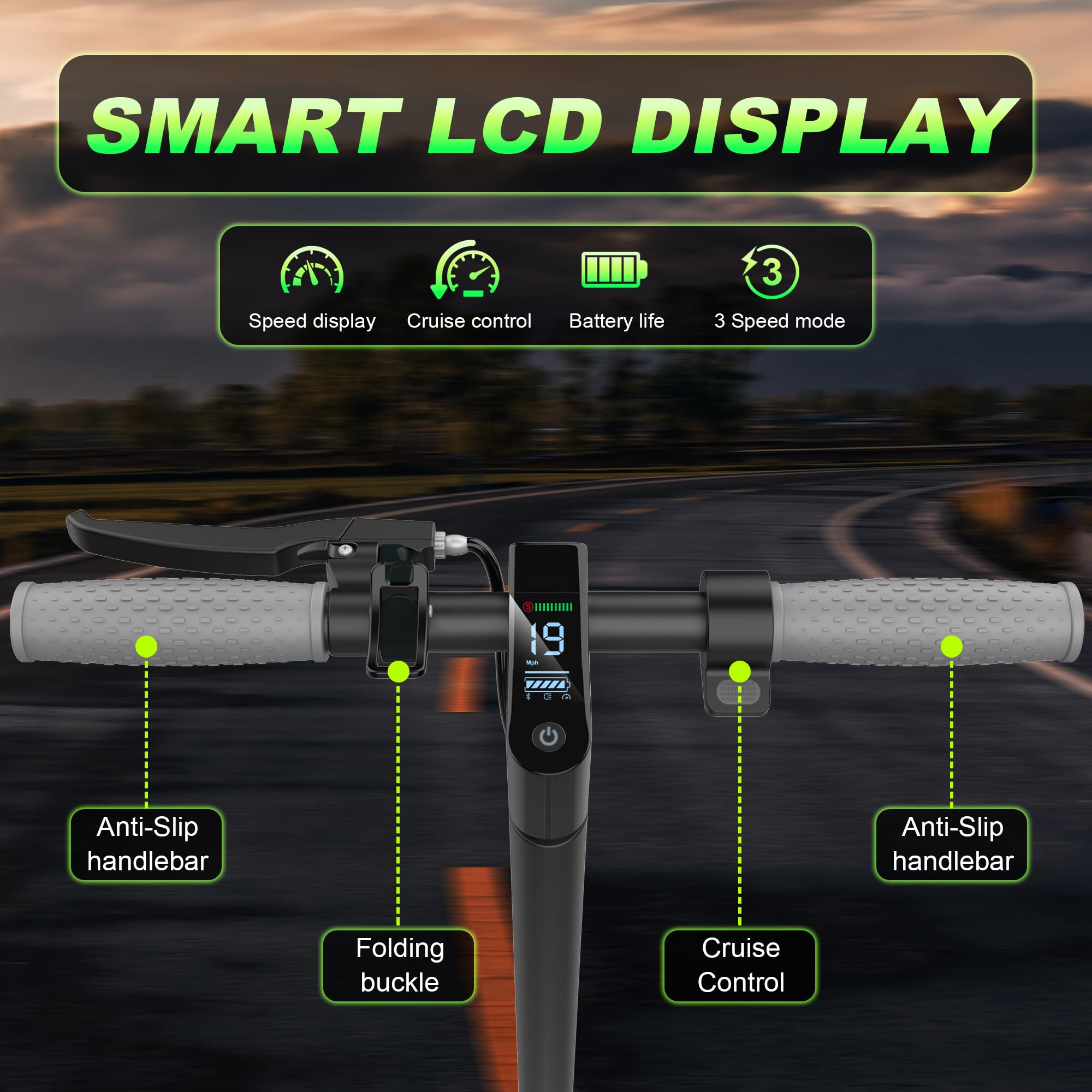 - [TWO WAYS OF STARTING MODE] This e-scooter provides two kinds of mode: glide start mode (slide for 3 seconds then automatically drive at a constant speed) and electric start mode, which conforms to ergonomic human engineering