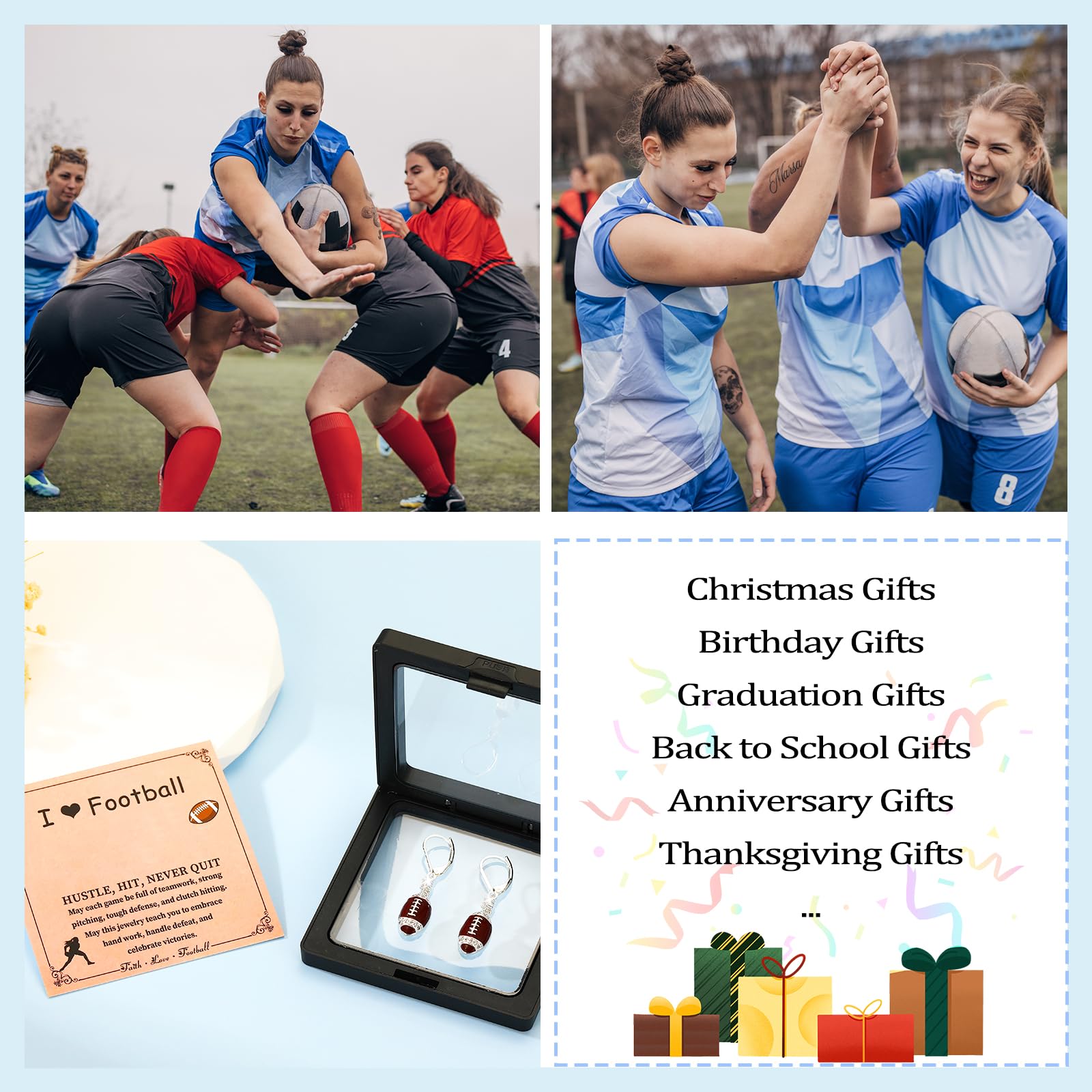 - 【Perfect Gift for Her】A thoughtful and unique gift option, these Football earrings serve as a memorable present for daughter, granddaughter, wife, friends, Football mom or grandmom, women coaches, and players, celebrating their passion and dedication to the game of Football.